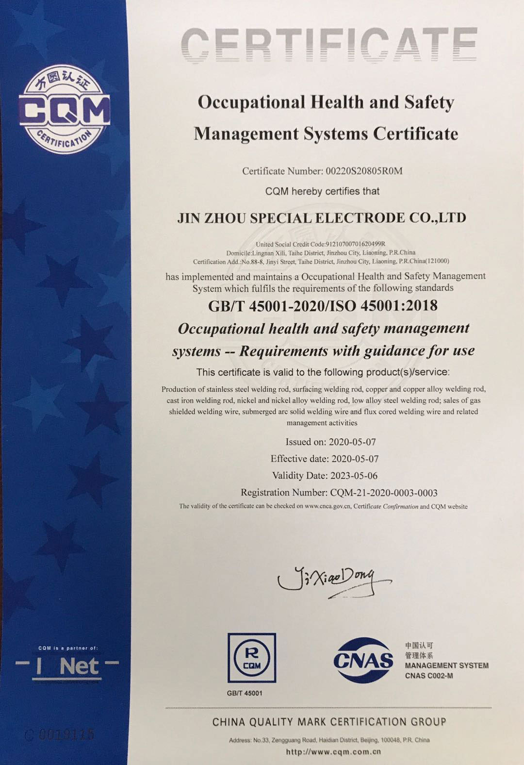 認(rèn)證名稱:Occupational Health and Safety Management Systems Certificate