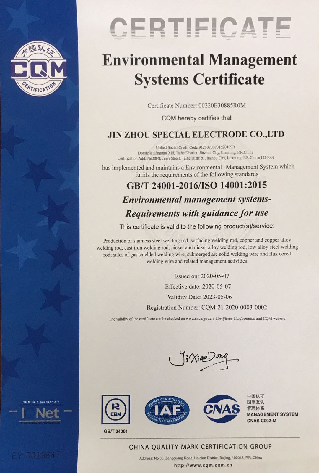 認(rèn)證類別:GB/T 24001-2016/ISO 14001:2015 《環(huán)境管理體系 要求及使用指南》